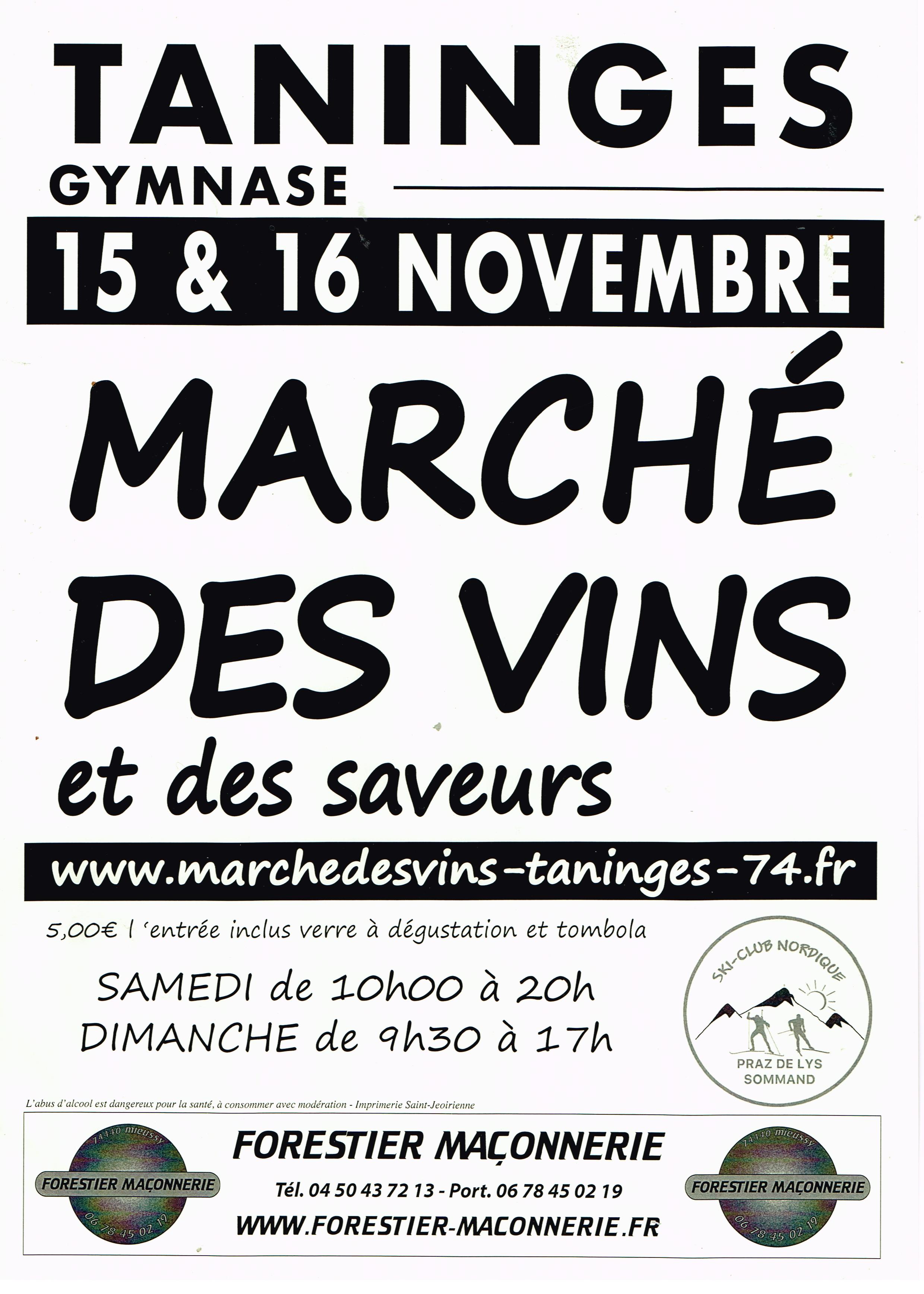 Nous avons le plaisir de vous convier à notre marché des vins et des saveurs organisé par le ski club nordique de Praz-de-Lys Sommand.